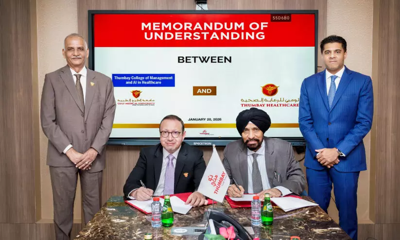 ദുബൈ: ഗൾഫ് മെഡിക്കൽ യൂനിവേഴ്സിറ്റിയുടെ കീഴിലുള്ള തുംബെ കോളജ് ഓഫ് മാനേജ്മെന്റ് ആൻഡ് എ.ഐ ഇൻ ഹെൽത്ത്കെയറും തുംബൈ ഹെൽത്ത്കെയർ ഡിവിഷനുമായി സുപ്രധാന ധാരണാപത്രം ഒപ്പുവച്ചു. വിദ്യാർഥികൾക്ക് പഠനകാലത്തുതന്നെ തുംബെ ഹെൽത്ത്കെയറിന്റെ യു.എ.ഇയിലെ വിവിധ അംഗീകൃത ആശുപത്രികളിലും മെഡിക്കൽ സെന്ററുകളിലും പ്രായോഗിക പരിശീലനം, ഓൺ ദ ജോബ് ട്രെയിനിങ്, ഷോർട്ട് ഇൻഡസ്ട്രി പ്ലേസ്മെന്റുകൾ എന്നിവ ഇതുവഴി ഉറപ്പാക്കും.