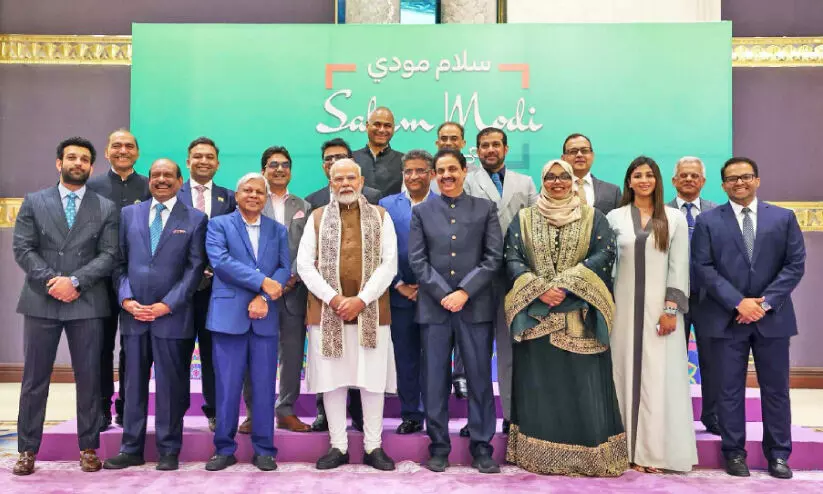 ജിദ്ദയിൽ എത്തിയ പ്രധാനമന്ത്രി നരേന്ദ്ര മോദിയോടൊപ്പം അലീഷ മൂപ്പൻ