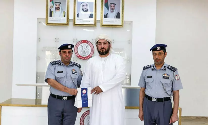 നടത്തിയ അറബ് പൗരനെ അബൂദബി പൊലീസ് ആദരിക്കുന്നു