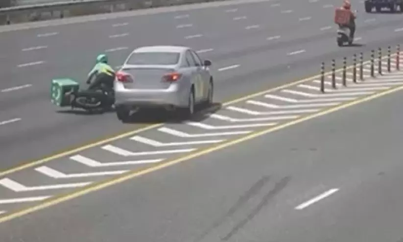 കാർ ഡ്രൈവർ അശ്രദ്ധമായി ലൈൻ മാറിയതിനെ തുടർന്ന് പിന്നിൽ വരുന്ന ലോറി ബാരിക്കേഡിൽ ഇടിച്ചു കയറുന്നതാണ് ആദ്യവീഡിയോയിലുള്ളത്. ലോറിക്കും കാറിനും ഇടയിലുണ്ടായിരുന്ന മിനി ട്രക്ക് അപകടം ഒഴിവാക്കാൻ ശക്തമായി ബ്രേക്കിടുന്നതും ദൃശ്യങ്ങളിൽ കാണാം. നിയന്ത്രണം വിട്ട കാറിടിച്ച് ഡെലിവറി റൈഡർക്ക് പരിക്കേൽക്കുന്നതാണ് മറ്റൊരു വീഡിയോയിലുള്ളത്. ഇത്തരം നടപടികൾ ട്രാഫിക് നിയമങ്ങളുടെയും റോഡ് സുരക്ഷ മാനദണ്ഡങ്ങളുടെയും നഗ്നമായ ലംഘനമാണെന്ന് ജനറൽ ഡിപാർട്ട്മെന്റ് ഓഫ് ട്രാഫിക് ഡയറക്ടർ ബ്രിഗേഡിയർ ജുമ സലിം ബിൻ സുവൈദാൻ പറഞ്ഞു.