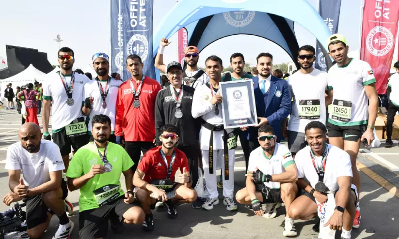 ദുബൈ: ദുബൈ മാരത്തൺ 2026ൽ മികച്ച നേട്ടവുമായി രണ്ട് ഗിന്നസ് റെക്കോഡ് സ്വന്തമാക്കി ദുബൈ പൊലീസ്. കോച്ച് സഈദ് ബിലാൽ ആണ് ആദ്യ റെക്കോഡ് സ്വന്തമാക്കിയത്. തൈക്കോണ്ടോ യൂനിഫോം ധരിച്ച് 48.6 മിനിറ്റ് കൊണ്ട് 10 കിലോമീറ്റർ ഓടിയാണ് ഈ വിഭാഗത്തിൽ പുതിയ റെക്കോഡ് ഇദ്ദേഹം സ്വന്തം പേരിലാക്കിയത്. ലഫ്റ്റനന്റ് ഹസൻ ബിലാൽ, ഫസ്റ്റ് സാർജന്റ് ആരിഫ് അബ്ദുൽ റസാഖ്, ഫസ്റ്റ് കോർപോറൽ നാബിൽ അൽ ശാമി, ഫസ്റ്റ് കോർപോറൽ മുഹമ്മദ് ഷരിഫ് എന്നിവരടങ്ങുന്ന സംഘത്തിനാണ് രണ്ടാമത്തെ റെക്കോഡ്. 70 കിലോ ഭാരമുള്ള രോഗിയെ കിടത്തിയ സ്ട്രച്ചറുമായി 56.50 മിനിറ്റു കൊണ്ട് 10 കിലോമീറ്റർ ഓടിയാണ് സംഘം പുതിയ ഗിന്നസ് റെക്കോഡിട്ടത്. ശാരീരികക്ഷമത ഏറെ ആവശ്യമുള്ള സാഹചര്യങ്ങളിൽ സഹിഷ്രുത, സഹകരണം, കാര്യക്ഷമത എന്നിവ ഉയർത്തിക്കാണിക്കുന്ന പ്രകടനമാണ് ഇരു കൂട്ടരും കാഴ്ചവെച്ചതെന്ന് ദുബൈ പൊലീസ് അറിയിച്ചു.