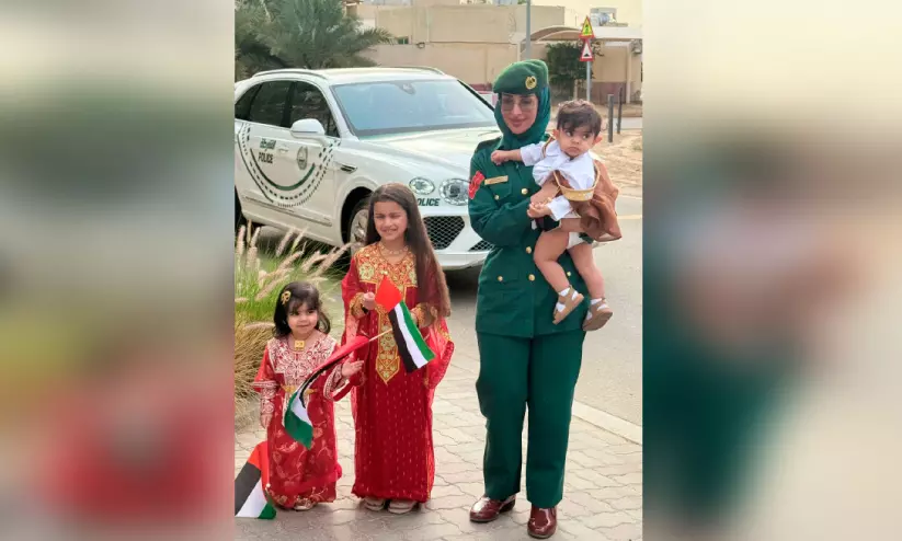 ‘പ്രൗഡ് ഓഫ് യു.എ.ഇ’ കാമ്പയിനിന്റെ ഭാഗമായി ദുബൈ പൊലീസ് താമസ മേഖലകളിൽ ദേശീയ പതാക വിതരണം ചെയ്യുന്നു