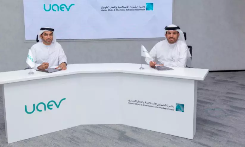 പള്ളികളുടെ പാർക്കിങ് സ്ഥലങ്ങളിൽ ഇ.വി ചാർജിങ് സ്റ്റേഷനുകൾ സ്ഥാപിക്കുന്നതിനുള്ള കരാറിൽ ഐ.എ.സി.എ.ഡിയും യു.എ.ഇ.വിയും ഒപ്പുവെക്കുന്ന ചടങ്ങ്