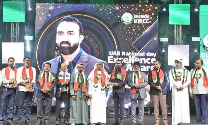 ദുബൈ കെ.എം.സി.സി ഏർപ്പെടുത്തിയ യു.എ.ഇ നാഷനൽ ഡേ എക്സലൻസ് അവാർഡ് അൽമദീന ഗ്രൂപ് ചെയർമാൻ അബ്ദുല്ല പൊയിൽ, കോൺഫിഡന്റ് ഗ്രൂപ് സ്ഥാപകനും ചെയർമാനുമായ ഡോ. റോയ് സി.ജെ എന്നിവർക്ക് ജി.ഡി.ആർ.എഫ്.എ ഡയറക്ടർ ജനറൽ ലഫ്.ജനറൽ മുഹമ്മദ് അഹ്മദ് അൽ മറി കൈമാറി.