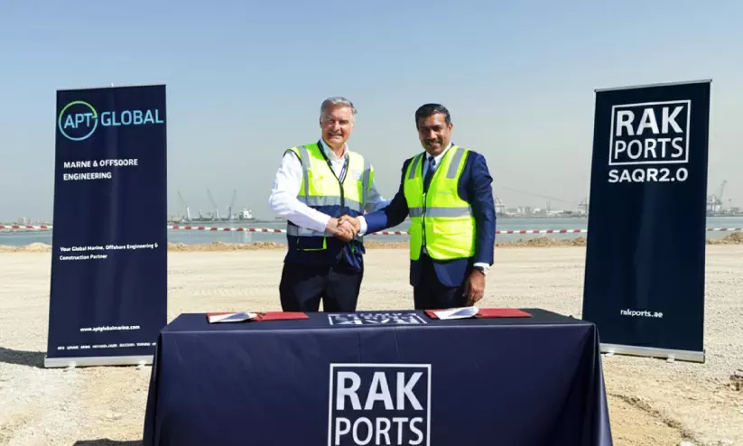 പ്രോജക്ട് കാര്ഗോ ലോജിസ്റ്റിക്സ് രംഗത്ത് റാസല്ഖൈമയില് വിപുല പദ്ധതി തുടങ്ങുന്നതിന് കരാർ ഒപ്പിടൽ ചടങ്ങിൽ എ.പി.ടി ഗ്ലോബൽ, റാക് പോര്ട്ട്സ് പ്രതിനിധികൾ