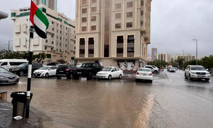 ഫുജൈറയിൽ കനത്ത മഴയിൽ റോഡിൽ വെള്ളം കയറിയ നിലയിൽ