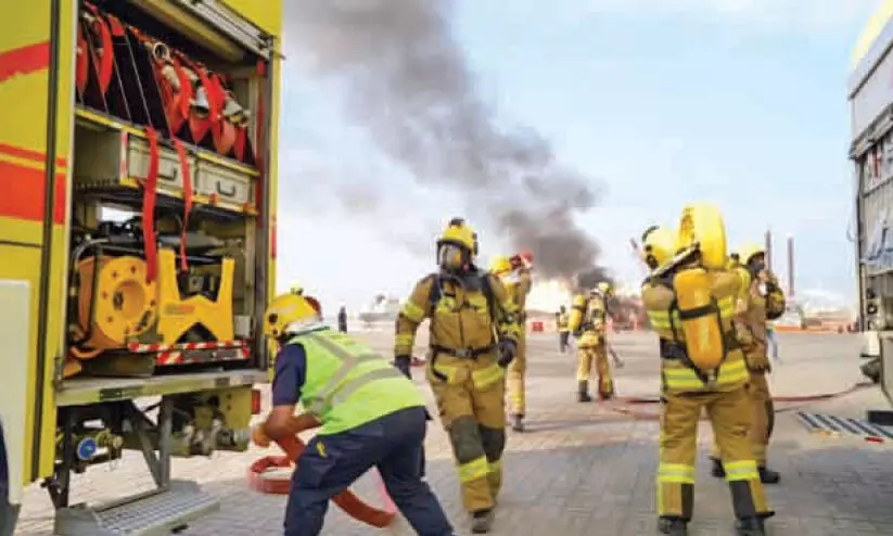 സിവില് ഡിഫന്സ് റാസല്ഖൈമ ഹുലൈല വ്യവസായ മേഖലയില് നടത്തിയ മോക്ഡ്രില്