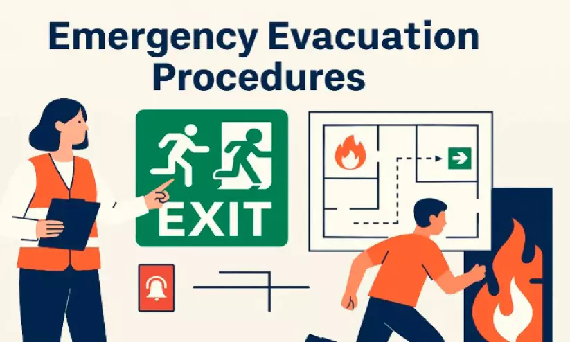 കെട്ടിടത്തിലെ ജീവനക്കാരുടെയും എമർജൻസി ടീമുകളുടെയും നിർദ്ദേശങ്ങൾ കൃത്യമായി പാലിക്കണം. പുറത്തേക്ക് കടക്കുമ്പോൾ വാതിലുകൾ അടക്കണം, എന്നാൽ അവ ലോക്ക് ചെയ്യരുത്. ഒഴിപ്പിക്കൽ സമയത്ത് ലിഫ്റ്റുകൾക്ക് പകരം കോണി പടവുകൾ ഉപയോഗിക്കണം.