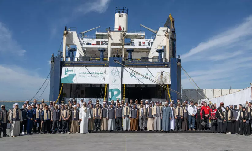 ‘സഖര് ഹ്യുമാനിറ്റേറിയന് ഷിപ്പി’നെ അൽ ആരിഷ് തുറമുഖത്ത് യു.എ.ഇ മനുഷ്യാവകാശ