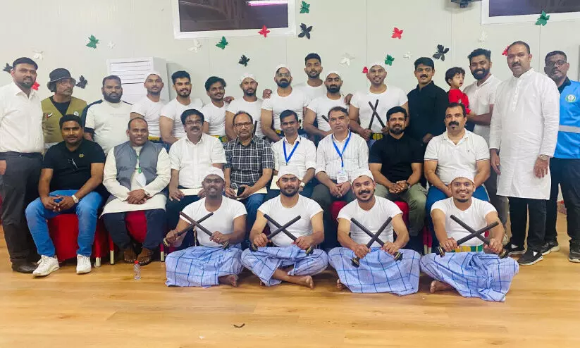 ദുബൈ കെ.എം.സി.സി മലപ്പുറം ജില്ല ഭാരവാഹികൾക്കൊപ്പം കോൽക്കളി കലാകാരന്മാർ