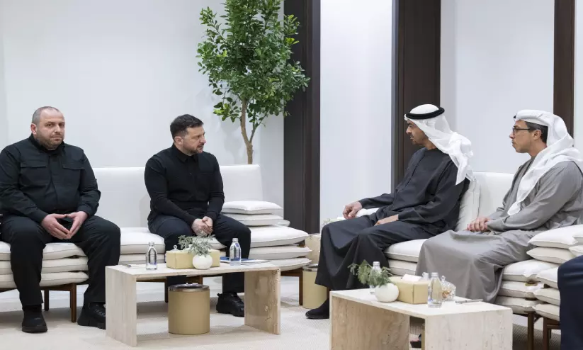 യു.എ.ഇ പ്രസിഡൻറ് ശൈഖ് മുഹമ്മദ് ബിൻ സായിദ് ആൽ നഹ്യാനും യുക്രെയ്ൻ പ്രസിഡന്റ് വ്ലാദിമിർ സെലൻസ്കിയും അബൂദബിയിൽ കൂടിക്കാഴ്ച നടത്തുന്നു