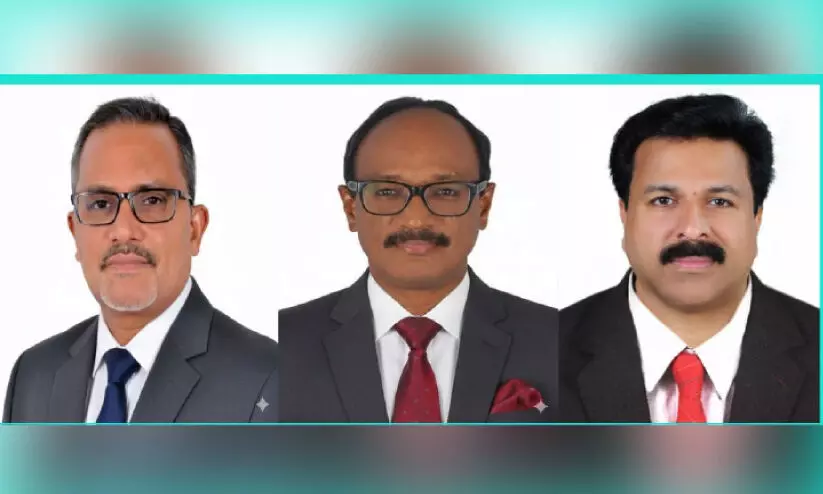 സാന്ത്വനം ദുബൈ ഭാരവാഹികളായ തങ്കച്ചൻ സാമുവേൽ (ചെയർമാൻ), എബു വർഗീസ് (ജനറൽ സെക്രട്ടറി), മാത്യു ടി.ഐ (ട്രഷറർ)