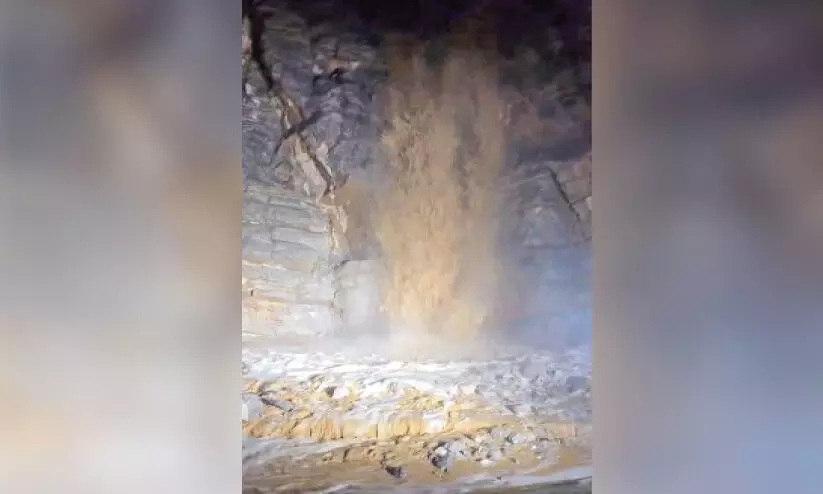 റാസല്ഖൈമയിലെ മഴയെ തുടർന്ന് മലമുകളിൽനിന്ന് വെള്ളം കുത്തിയൊഴുകുന്നു