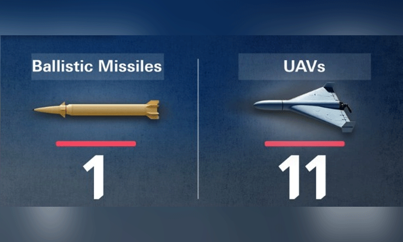 ദുബൈ: ഇറാൻറെ ഒരു മിസൈലടക്കം 11 ഡ്രോണുകളെ ചൊവ്വാഴ്ച പ്രതിരോധിച്ചതായി യു.എ.ഇ പ്രതിരോധമന്ത്രാലയം അറിയിച്ചു. ഉച്ചയോടെയാണ് ഷാർജയിൽ അൽ സുറയ്യ ടെലികോം കമ്പനിക്ക് നേരെ ഇറാനിൽ നിന്ന് മിസൈലാക്രമണമുണ്ടായത്.