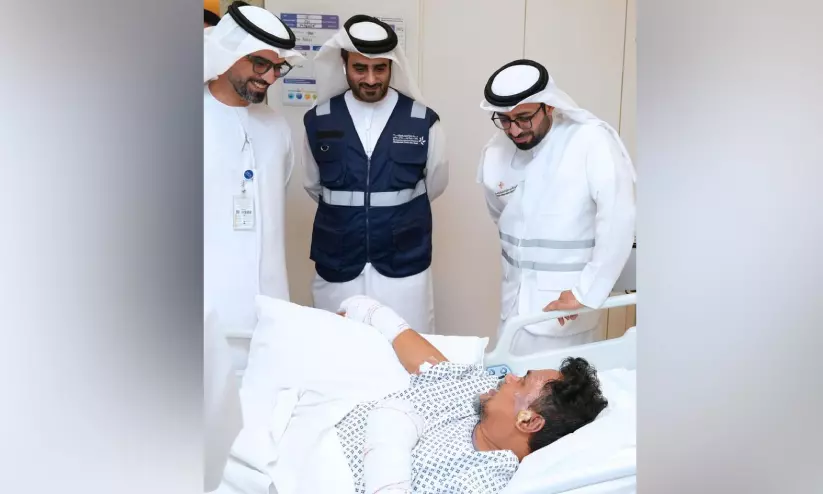 അബൂദബിയിലുണ്ടായ ഇറാൻ ആക്രമണത്തിൽ പരിക്കേറ്റവരുടെ സ്ഥിതിഗതികൾ വിലയിരുത്തുന്നതിനായിരുന്നു സന്ദർശനം.