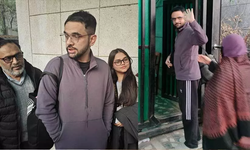 ജാമ്യം പൂർത്തിയാക്കി ജയിലിലേക്ക് മടങ്ങുന്ന ഉമർ ഖാലിദ് ബന്ധുക്കൾക്കൊപ്പം