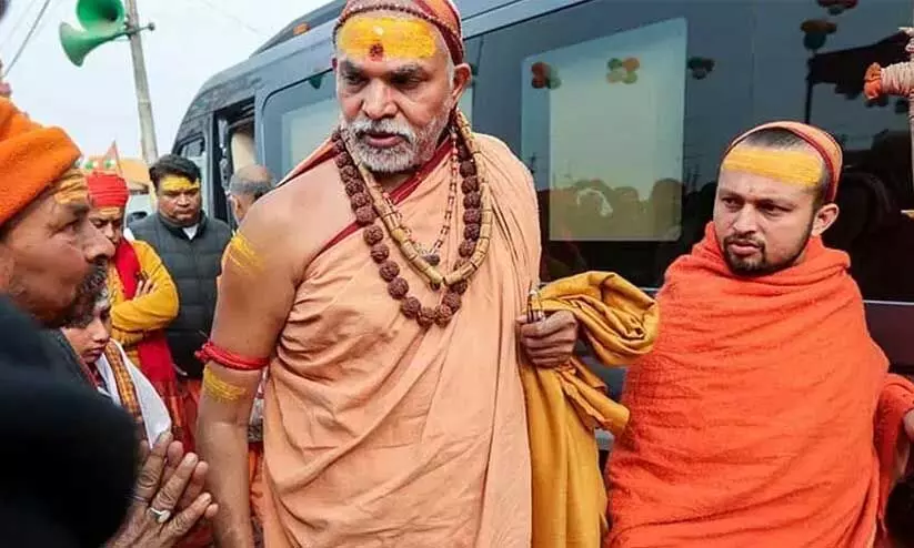 സ്വാമി അവിമുക്തേശ്വരാനന്ദ് സരസ്വതി മാഘമേളയില് നിന്ന് പുറത്ത് പോവുന്നു