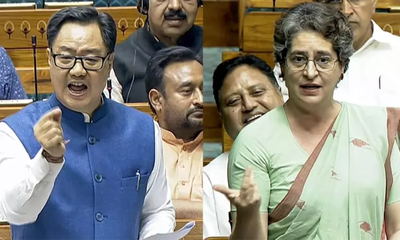 റിജുജുവിന്റെ പരിഹാസത്തിന് പ്രിയങ്ക ശക്തമായി പ്രതികരിച്ചു. 'ഞാൻ ചിരിക്കുന്നുണ്ടെന്ന് അദ്ദേഹം പരാമർശിച്ചു. സ്വന്തം വാദങ്ങൾക്കായി അവർ രാവും പകലും വിമർശിക്കുന്ന നെഹ്റുജിയുടെ വാക്കുകൾ ഉപയോഗിച്ചതാണ് എന്നെ ചിരിപ്പിക്കുന്നത്. അവർ പെട്ടെന്ന് നെഹ്റുവിനെ ബഹുമാനിക്കാൻ തുടങ്ങി.'- പ്രിയങ്ക പറഞ്ഞു.