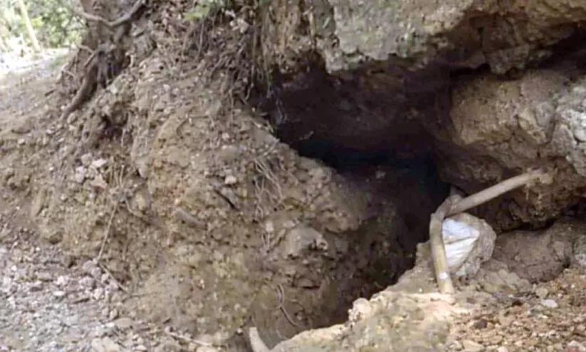 ദേവാല കാട്ടിമട്ടം ഭാഗത്ത് അനധികൃതമായി സ്വർണഖനനം നടത്താൻ മലകൾ തുരന്നപ്പോൾ