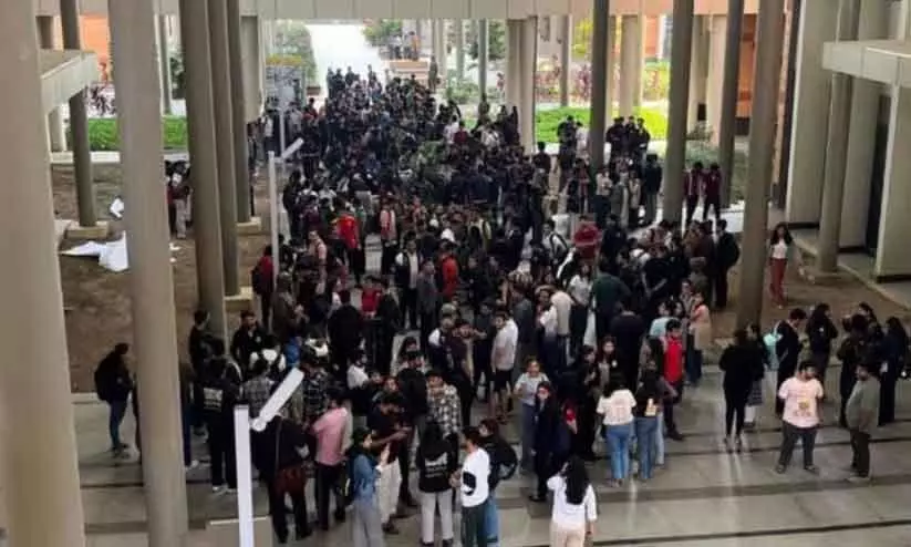 60 ഓളം എം.ബി.എ അവസാന വർഷ വിദ്യാർഥികളാണ് പരീക്ഷ ബഹിഷ്കരിച്ചത്. ഫെബ്രുവരി 21ന് രാത്രി അത്താഴത്തിനായി ക്യാമ്പസിൽ നിന്ന് പുറത്തിറങ്ങിയ വിദ്യാർഥികളെയാണ് അധികൃതർ അച്ചടക്ക നടപടിയുടെ പേരിൽ പുറത്താക്കിയത്. 75 ഓളം വിദ്യാർഥികളായിരുന്നു അത്താഴത്തിനായി പുറത്തിറങ്ങിയത്.