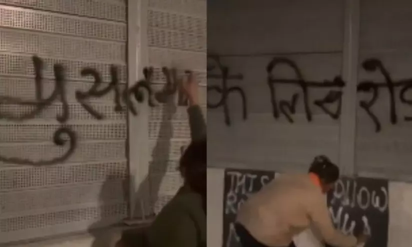 കറുത്ത സ്പ്രേ പെയിന്റ് ഉപയോഗിച്ച് ചുമരിൽ വിദ്വേഷ സന്ദേശം എഴുതുന്നതിന്റെ ദൃശ്യങ്ങൾ സമൂഹമാധ്യമങ്ങളിൽ പ്രചരിച്ചിട്ടുണ്ട്. സംഭവത്തിൽ ദേശീയപാത അതോറിറ്റി ജീവനക്കാരൻ സുനിൽ കുമാറാണ് പരാതി നൽകിയത്. കേസിൽ ഹിന്ദു രക്ഷാദൾ പ്രവർത്തകർക്കെതിരെ എഫ്.ഐ.ആർ രജിസ്റ്റർ ചെയ്തിട്ടുണ്ടെന്ന് പൊലീസ് അറിയിച്ചു. കുറ്റക്കാരെ കണ്ടെത്തുമെന്നും അവർക്കെതിരെ നടപടി എടുക്കുമെന്നും പൊലീസ് കൂട്ടിച്ചേർത്തു.