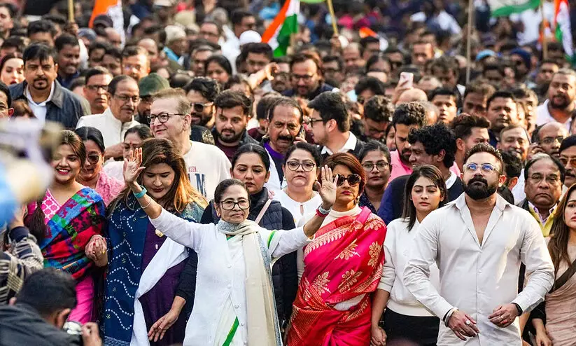 കൊൽക്കത്ത: തൃണമൂൽ കോൺഗ്രസിന്റെ രാഷ്ട്രീയ കൺസൾട്ടൻസി സ്ഥാപനമായ ‘ഐ-പാക്കി’ന്റെ മേധാവി പ്രതീക് ജെയിനിന്റെ വീട്ടിലെ ഇ.ഡി റെയ്ഡിനെതിരെ കൊൽക്കത്തയിൽ മുഖ്യമന്ത്രി മമത ബാനർജിയുടെ നേതൃത്വത്തിൽ കൂറ്റൻ പ്രതിഷേധ റാലി.