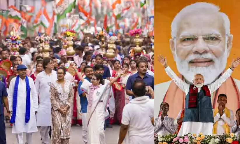 കൊൽക്കത്ത: പശ്ചിമ ബംഗാളിലെ പ്രചാരണ റാലികളിൽ തൃണമൂൽ കോൺഗ്രസിനെതിരെ രൂക്ഷ വിമർശനവുമായി രംഗത്തെത്തിയ പ്രധാനമന്ത്രിക്ക് ശക്തമായ മറുപടിയുമായി മുഖ്യമന്ത്രി മമത ബാനർജി. സർക്കാർ സംവിധാനങ്ങളെ പ്രധാനമന്ത്രി രാഷ്ട്രീയ പ്രചാരണത്തിനുള്ള വേദിയാക്കി മാറ്റുന്നത് അപലപനീയമാണെന്ന് പറഞ്ഞ മമത, മോദിയുടെ പ്രചാരണം നിയമവിരുദ്ധമാണെന്നും കുറ്റപ്പെടുത്തി. വനിതാ സംവരണ ബിൽ പരാജയപ്പെട്ടതിനു പിന്നാലെ രാജ്യത്തോടായി നടത്തിയ പ്രഭാഷണം രാഷ്ട്രീയ പ്രചാരണമാക്കി മാറ്റിയതായും തെരഞ്ഞെടുപ്പ് കമീഷന് പരാതി നൽകുമെന്നും മമത പറഞ്ഞു. വനിതാ സംവരണത്തിൽ തൃണമൂലിനെ ആക്രമിച്ച പ്രധാനമന്ത്രിക്ക് കണക്കുകൾ നിരത്തി മറുപടി നൽകാനും മമത മറന്നില്ല. വനിതാ സംവരണത്തെ മറയാക്കി, മണ്ഡല പുനർനിർണയ അജണ്ട നടപ്പാക്കാനുള്ള തീരുമാനമാണ് പരാജയപ്പെടുത്തിയത്.
