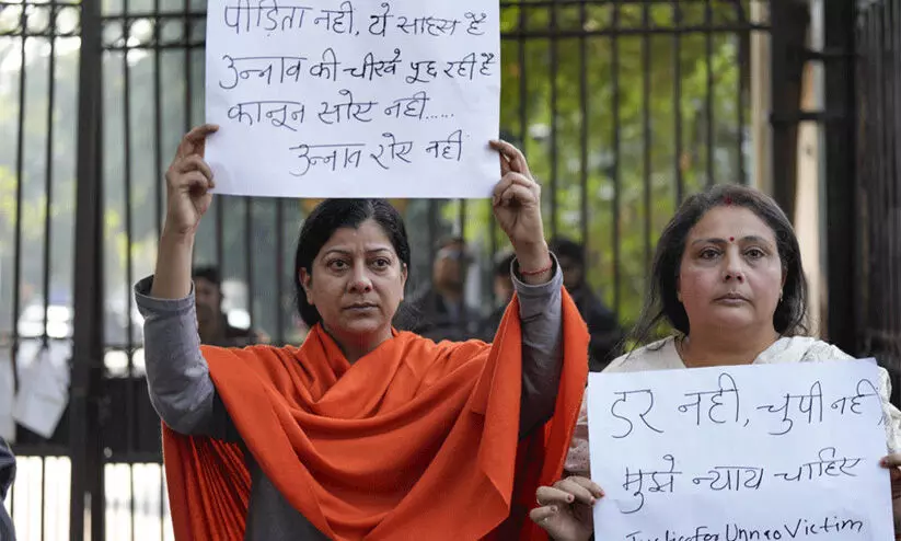 ന്യൂഡൽഹി: ഉന്നാവ് ബലാത്സംഗ കേസിൽ ശിക്ഷിക്കപ്പെട്ട മുൻ ബി.ജെ.പി എം.എൽ.എ കുൽദീപ് സെൻഗാറിന്റെ ജയിൽ ശിക്ഷ താൽക്കാലികമായി നിർത്തിവച്ചതിനെതിരെ ഡൽഹി ഹൈകോടതിക്ക് പുറത്ത് പ്രതിഷേധവുമായി ഇരയുടെ അമ്മയും വനിതാ ആക്ടിവിസ്റ്റുകളും പൗരാവകാശ പ്രവർത്തകരും. കോടതി സെൻഗാറിന് സോപാധിക ജാമ്യം അനുവദിച്ചതിൽ പ്രതിഷേധിച്ച് അവർ മുദ്രാവാക്യങ്ങൾ മുഴക്കുകയും രോഷം പ്രകടിപ്പിക്കുകയും ചെയ്തു. അഖിലേന്ത്യാ ജനാധിപത്യ വനിതാ അസോസിയേഷനിലെ പ്രവർത്തകരടക്കമുള്ളവർ ‘ബലാത്സംഗികളെ സംരക്ഷിക്കുന്നത് നിർത്തുക’ എന്നെഴുതിയ പ്ലക്കാർഡുകൾ ഉയർത്തിപ്പിടിച്ചായിരുന്നു പ്രതിഷേധിച്ചത്.