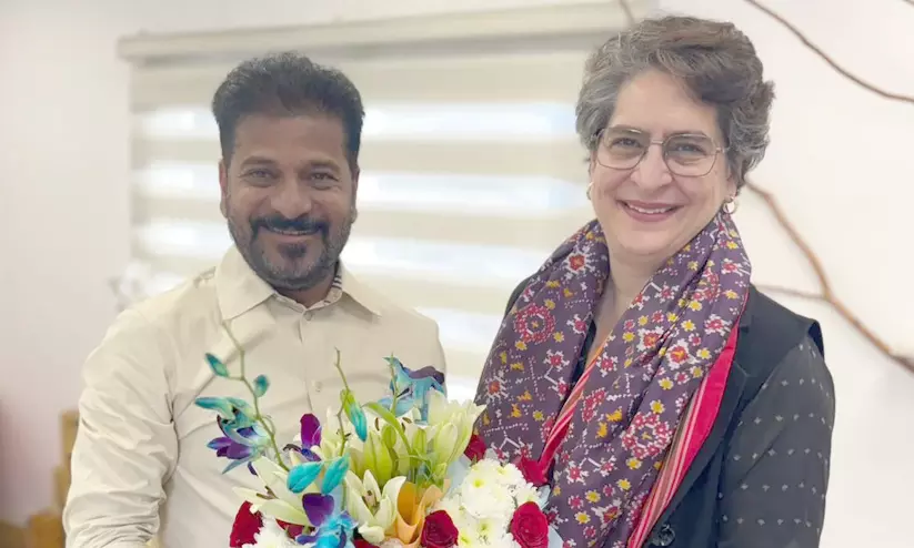 രേവന്ത് റെഡ്ഡി പ്രിയങ്ക ഗാന്ധിയുമായി കൂടിക്കാഴ്ചക്കെത്തിയപ്പോൾ