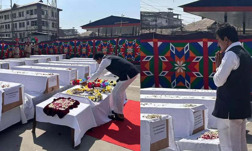 'രാമചന്ദ്രനെപ്പോലെ ഒരുപാട് പേരുടെ കുടുംബങ്ങൾ ഇവിടെയുണ്ട്, സ്വന്തം കൺമുന്നിൽവെച്ച് ഉറ്റവർ വീഴുന്നത് കണ്ടുനിന്നവർ. അധികനേരം അവരെ നോക്കിനിൽക്കാൻ കഴിഞ്ഞില്ല, ആ പെട്ടികളിലേക്കും. തിരിച്ചുചെല്ലുമെന്നും ഭൂമിയിലെ സ്വർഗത്തിൽ കണ്ട കാഴ്ചകൾ വാ തോരാതെ പറയുമെന്നും പ്രതീക്ഷിച്ച് നാട്ടിൽ കൊച്ചുമക്കളും മക്കളും ഉടയവരുമൊക്കെയായി കുറെ മനുഷ്യർ നാട്ടിലും കാത്തിരിപ്പുണ്ടായിരുന്നിരിക്കണം. അവരോടിനി എന്ത് പറയുമെന്നറിയില്ല. ഈ നിമിഷം രാജ്യം കേൾക്കാൻ കാത്തിരിക്കുന്നത് ചേതനയറ്റ മനുഷ്യരുടെ ജീവനുകൾക്കൊരു മറുപടിയാണ്. അതുണ്ടാവാൻ എല്ലാം ഈ രാജ്യം ഒറ്റക്കെട്ടായി നിൽക്കും. ഇനിയിങ്ങനെ ഒരു കാഴ്ചയ്ക്ക് മുൻപിൽ പതറി നിൽക്കാൻ ആരെയും നമ്മൾ വിട്ടുകൊടുക്കില്ല.'-കെ.സി വേണുഗോപാൽ പറഞ്ഞു.