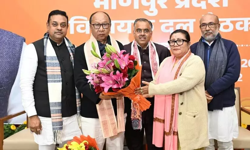 മണിപ്പൂർ മുഖ്യമന്ത്രിയായ നിർദേശിച്ച യുംനം ഖേംചന്ദും നെംച കിപ്ജെനും ബി.ജെ.പി ആസ്ഥാനത്ത്