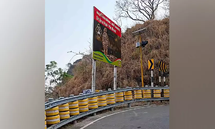 ആളിയാർ-വാൽപാറ റൂട്ടിലെ പതിമൂന്നാം വളവിൽ ഒരു വശത്ത് മാത്രമുള്ള ഉയരത്തിലുള്ള സുരക്ഷഭിത്തിയും സെൻസർ അലാറം പോസ്റ്റും