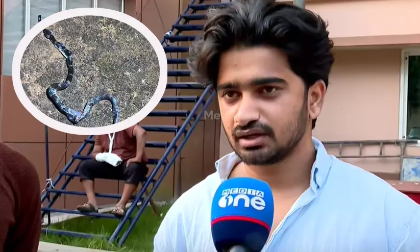 കോഴിക്കോട്: ‘കാലിൽ എന്തോ ഒന്ന് ഇങ്ങനെ ചുറ്റി നിൽക്കും പോലെ തോന്നി. മൊബൈൽ ഫ്ലാഷ് ജസ്റ്റ് ഒന്ന് ഓൺ ആക്കി പുതപ്പ് മാറ്റി നോക്കിയപ്പോൾ പാമ്പ്. ഉടനെ കാൽ കുടഞ്ഞു...’ -പറയുമ്പോൾ പൂനൂർ സ്വദേശി മുഹമ്മദ് അൻസാറി(22)ന്റെ ഞെട്ടൽ വിട്ടുമാറിയിട്ടില്ല. ഇന്ന് പുലർച്ചെ രണ്ട് മണിയോടെയാണ് സംഭവം.
