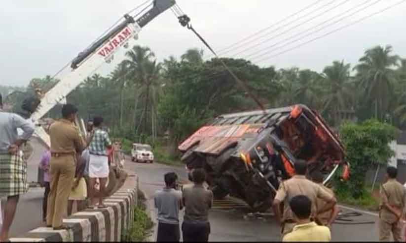 ആരുടെയും പരുക്ക് ഗുരുതരമല്ല.അപകടത്തിൽ പെട്ട ബസ് ക്രെയിൻ എത്തിച്ചു ഉയർത്തി.