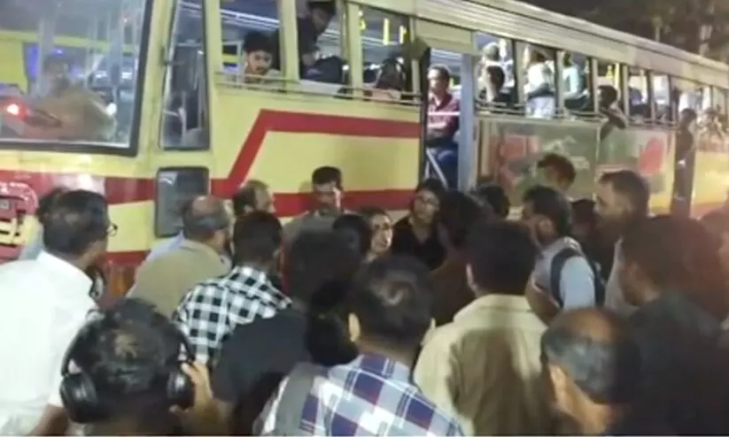 പൊങ്ങം നൈപുണ്യ കോളജിലെ വിദ്യാർഥികളായ ഇടുക്കി സ്വദേശിനിക്കും പത്തനംതിട്ട സ്വദേശിനിക്കുമാണ് ദുരനുഭവമുണ്ടായത്. പഠനാവശ്യത്തിനായി എറണാകുളത്തു പോയി മടങ്ങുകയായിരുന്നു ഇവർ. പൊങ്ങത്ത് ഇറങ്ങാനായി ബസ് നിർത്തി നൽകാൻ ആവശ്യപ്പെട്ടെങ്കിലും തയാറായില്ല. കരഞ്ഞ വിദ്യാർഥിനികളെ പിന്തുണച്ച് സഹയാത്രികർ പ്രതിഷേധിച്ചിട്ടും കാര്യമുണ്ടായില്ല.