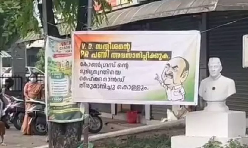 പി.ആര് പണി നിര്ത്തണമെന്നാണ് പോസ്റ്ററിലെ പരാമര്ശം. പി.ആര് വര്ക്കിന്റെ ബലത്തില് രമേശ് ചെന്നിത്തലയെ പോലുള്ള മുതിര്ന്ന നേതാക്കളെ താറടിച്ച് കാണിച്ച് കേരളത്തിന്റെ മുഖ്യമന്ത്രിയാകാനുള്ള വി.ഡി. സതീശന്റെ വ്യാമോഹം നടക്കില്ലെന്നും പോസ്റ്ററില് പറയുന്നു. വി.ഡി. സതീശന്റെ പി.ആര് പണി അവസാനിപ്പിക്കണം. മുഖ്യമന്ത്രിയെ ഹൈക്കമാന്ഡ് തീരുമാനിക്കുമെന്നുമാണ് മറ്റൊരു പോസ്റ്ററിലുള്ളത്.