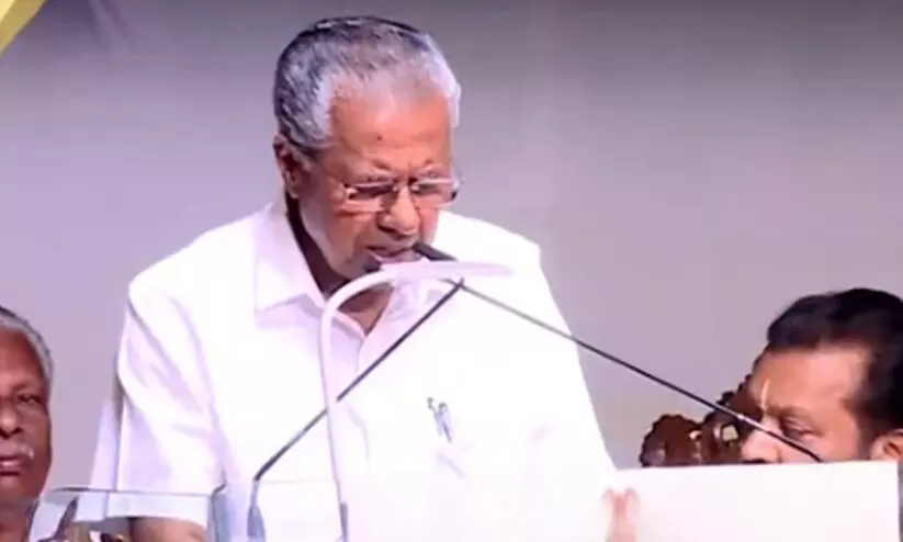'മുസ്ലിംകൾ ഭരതനാട്യം പഠിക്കരുതെന്നും ഹിന്ദുക്കൾ ഒപ്പനയിൽ പങ്കെടുക്കരുതെന്ന് പറഞ്ഞ് പ്രശ്നമുണ്ടാക്കാൻ ശ്രമിക്കുന്നത് നാം കണ്ടതാണ്. ക്രിസ്മസ് കരോളിന് നേരെ പോലും ആക്രമണം നടത്തുന്നത് നാം കണ്ടു. എവിടെയും മതത്തിന്റെ പേരിൽ കലാപം ഉണ്ടാകാൻ വർഗീയ വാദികൾ ശ്രമിക്കുകയാണ്. സിനിമയിലെ കഥാപാത്രങ്ങൾക്ക് പോലും ജാനകിയെന്നും സീതയെന്നും മറ്റും പേരിടാൻ സമ്മതിക്കാത്ത അവസ്ഥയിലേക്ക് കാര്യങ്ങൾ നീങ്ങുന്നു. സമാധാനവും സന്തോഷവും ഇല്ലാതാക്കുന്ന ഇത്തരം കലാപകാരികളെ ചെറുത്ത് തോൽപ്പിക്കാനുള്ള മികച്ചൊരായുധമായി കല മാറിയിട്ടുണ്ട്' എന്ന് മുഖ്യമന്ത്രി വ്യക്തമാക്കി.