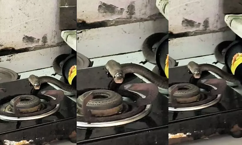 ശാസ്താംകോവിൽ ലോഡ്ജിൽ വാടകക്ക് താമസിക്കുകയാണ് രാജാ. വീടിന്റെ അടുക്കളയിൽ ഗ്യാസ് സ്റ്റൗവിനും പാത്രങ്ങൾക്കും ഇടയിലാണ് മൂർഖനെ കണ്ടത്. വിവരം അറിയിച്ചതിനെ തുടർന്ന് ഉതിമൂട്ടില്ലുള്ള മാത്തുക്കുട്ടി വീട്ടിലെത്തി പാമ്പിനെ പിടികൂടി.