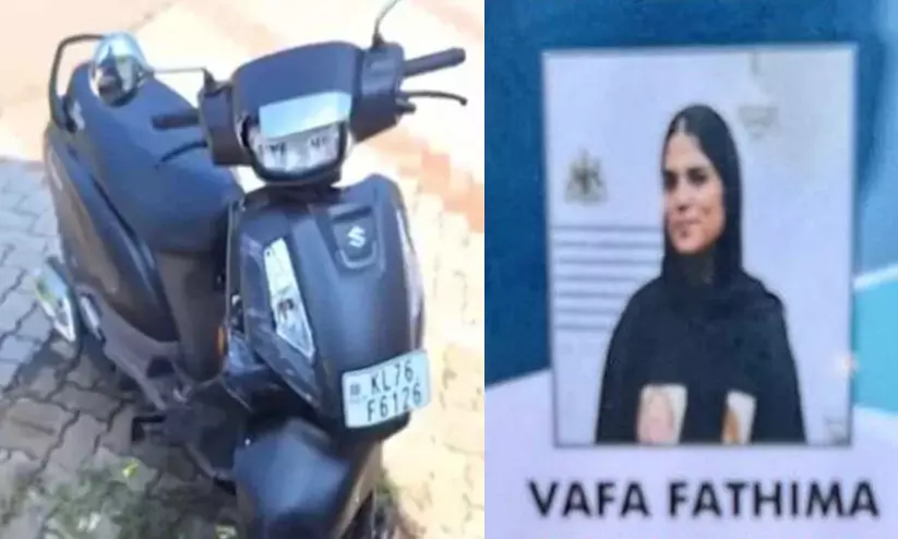 അപകടത്തിൽ പെട്ട സ്കൂട്ടർ, മരിച്ച വഫ ഫാത്തിമ
