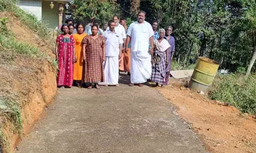 മാങ്കോട് ഒരിപ്പുറം ഉന്നതിയിലേക്ക് വസ്തു വാങ്ങി റോഡ് കോൺക്രീറ്റ് ചെയ്ത് നൽകിയ പരാജയപ്പെട്ട സ്ഥാനാർഥി മാങ്കോട് ഷാജഹാൻ നാട്ടുകാർക്കൊപ്പം