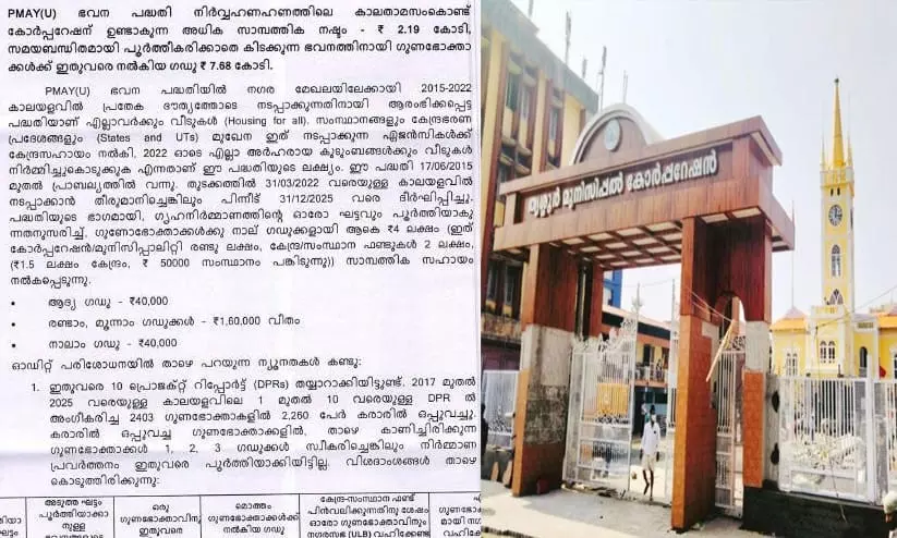 പി.എം.എ.വൈ(യു) പദ്ധതികളുടെ പ്രവർത്തി സമയബന്ധിതമായി പൂർത്തീകരിക്കാൻ നഗരസഭക്ക് കഴിഞ്ഞില്ല. കേന്ദ്ര-സംസ്ഥാന സഹായത്തിനുള്ള സഹായത്തിനുള്ള സമയപരിധി ഡിസംബർ 2025 വരെയായിരുന്നു. ഇനി പൂർത്തിയാകാൻ കഴിയാത്ത പദ്ധതികളുടെ ധനസഹായത്തിന്റെ ഉത്തരവാദിത്വം കോർപ്പറേഷന്റെ മാത്രമാണ്. പദ്ധതി നടത്തിപ്പിലെ കെടുകാര്യസ്ഥതയാണ് പാതി വഴിയിൽ മുടങ്ങാൻ കാരണം.