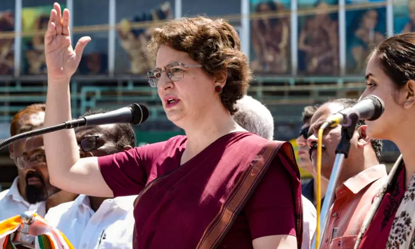 വയനാട്ടിലെ പടിഞ്ഞാറത്തറയിൽ യു.ഡി.എഫ് പ്രചാരണയോഗത്തിൽ എ.ഐ.സി.സി ജനറൽ സെക്രട്ടറി പ്രിയങ്ക ഗാന്ധി എം.പി സംസാരിക്കുന്നു