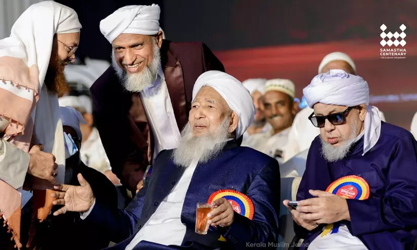 കേരള മുസ്ലിം ജമാഅത്തിന്റെ നേതൃത്വത്തിൽ നടക്കുന്ന കേരള യാത്രക്ക് കോട്ടയത്ത് നൽകിയ സ്വീകരണത്തിൽ കാന്തപുരം എ.പി അബൂബക്കർ മുസ്ലിയാർ