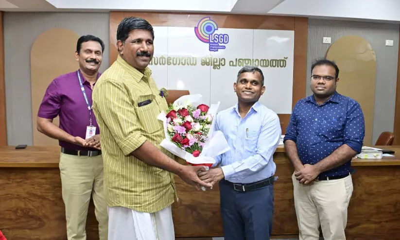 അധികാരമേറ്റ ജില്ല പഞ്ചായത്ത് പ്രസിഡന്റിനെ കലക്ടർ അനുമോദിക്കുന്നു