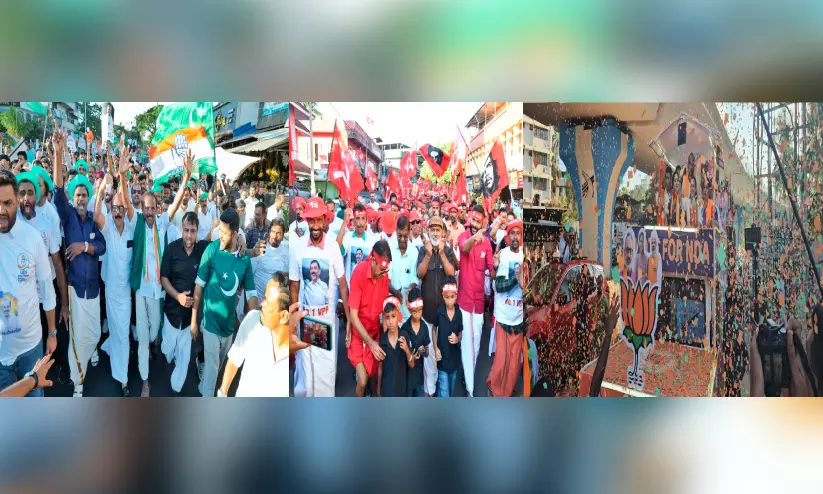 കാസർകോട്: ജില്ലയിലെ അഞ്ചു നിയമസഭ മണ്ഡലങ്ങളിലെ മുന്നണി സ്ഥാനാർഥികളുടെ പ്രതീക്ഷകൾ വാനോളമുയർത്തി പ്രചാരണത്തിന്റെ കൊട്ടിക്കലാശം വൈകീട്ടോടെ തെരുവീഥികളെ ആവേശപ്രകമ്പനമാക്കി. വെറും 23 ദിവസങ്ങൾ മാത്രമൊതുങ്ങിയ പ്രചാരണം ചൊവ്വാഴ്ച വൈകീട്ടോടെ അവസാനിക്കുമ്പോൾ മുന്നണികൾ വിജയപ്രതീക്ഷയിലാണ്. കാസർകോട് നിയമസഭ മണ്ഡലം യു.ഡി.എഫ് സ്ഥാനാർഥി കല്ലട്ര മാഹിന്റെ കൊട്ടിക്കലാശ പ്രചാരണജാഥ ചെർക്കളയിൽനിന്ന് നാലിന് തുടങ്ങി കാസർകോട് പഴയ ബസ് സ്റ്റാൻഡിലാണ് സമാപിച്ചത്.