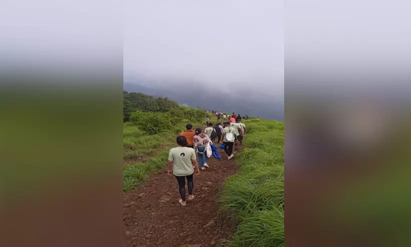 റാണിപുരത്തേക്ക് സഞ്ചാരികൾ നടന്നുകയറുന്ന ദൃശ്യം