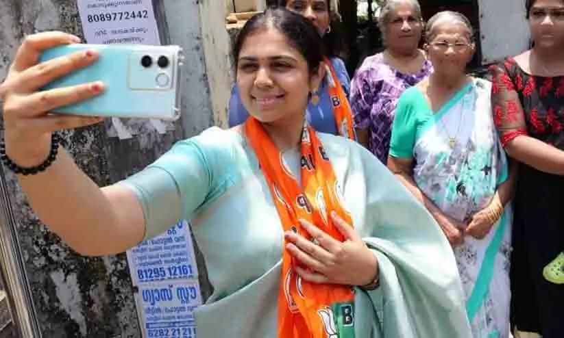 ‘രാഷ്ട്രീയത്തിലേക്കുള്ള എൻട്രി പെട്ടെന്നുള്ളതായിരുന്നു. ആദ്യം ഡൽഹിയിൽ നിന്നൊക്കെ കുറച്ച് കോൾസ് വന്നപ്പോൾ ഫ്രോഡ് കോൾ ആയിരിക്കും എന്ന് ഞാൻ വിചാരിച്ചു. ഇലക്ഷൻ ടൈമിൽ അറിയാതെ വിളിക്കുന്നതായിരിക്കും എന്നുള്ള രീതിയിൽ ഞാൻ ഹസ്ബൻഡിനോട് പറഞ്ഞു. പിന്നീട് ആവർത്തിച്ച് കോൾ വരാൻ തുടങ്ങി. ഇവിടുന്ന് കോൾ വരാൻ തുടങ്ങി. 20 -20യുടെ ഓഫിസിൽ നിന്ന് കോൾ വരാൻ തുടങ്ങി. അപ്പൊൾ ഞങ്ങൾ ഏകദേശം ഡിസ്കസ് ചെയ്യാൻ തുടങ്ങി. ഒരു ഓപ്പർച്ചൂണിറ്റി കിട്ടുമ്പോൾ അത് മാക്സിമം എന്താന്നുള്ളത് അന്വേഷിക്കുകയെങ്കിലും വേണമെന്ന് പുള്ളി പറഞ്ഞു. അതറിയണം എന്ന് കരുതിയാണ് നമ്മൾ 20-20യുടെ സാബു സാറിനെ മീറ്റ് ചെയ്യാൻ പോയത്. 20-20 എങ്ങനെ പോകുന്നു എന്നും എന്താണ് അവരുടെ വികസനം, കിഴക്കമ്പലം പ്ലാനുകൾ, സ്ട്രാറ്റജീസ് ഒക്കെ നമുക്ക് അറിയാവുന്നതായിരുന്നു. അവർ ബിജെപിയുമായി കൂടിച്ചേരുമ്പോൾ ഡബിൾ സ്ട്രോങ്ങ്, ഡബിൾ എൻജിൻ എഫക്ട് പോലെയായി. പിന്നീട് ഒന്നും ആലോചിക്കേണ്ടി വന്നില്ല, ആ ഓപ്പോർച്ചൂണിറ്റി ഏറ്റെടുക്കുകയായിരുന്നു.