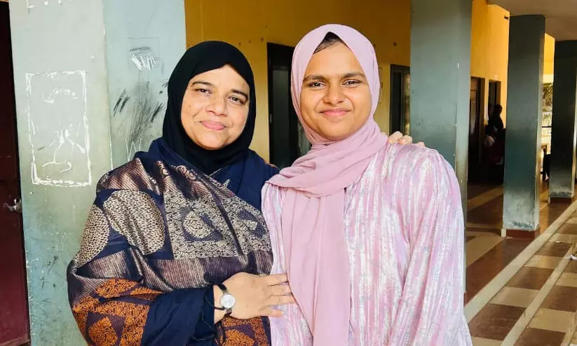സംസ്ഥാന സ്കൂൾ കലോത്സവത്തിൽ അറബി മോണോ ആക്ടിൽ എ ഗ്രേഡ് നേടിയ കൊട്ടുക്കര പി.പി.എം.എച്ച്.എസ്.എസ് വിദ്യാർഥിനി നസ, മോണോ ആക്ട് രചിച്ച റസിയ ടീച്ചർക്കൊപ്പം