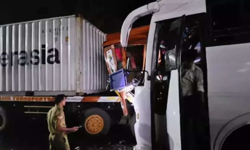 കോഴിക്കോട്: കോഴിക്കോട് ടൂറിസ്റ്റ് ബസും കണ്ടെയ്നർ ലോറിയും കൂട്ടിയിടിച്ച് അപകടം. 28 പേർക്ക് പരിക്കേറ്റു. തെരഞ്ഞെടുപ്പ് ഡ്യൂട്ടി കഴിഞ്ഞ ശേഷം മടങ്ങിയ പൊലീസുകാര് ഉള്പ്പെടെ 28 പേര്ക്കാണ് അപകടത്തില് പരിക്കേറ്റത്. കോഴിക്കോട് കൊയിലാണ്ടിയിലാണ് ബസില് കണ്ടെയ്നര് ലോറിയിടിച്ച് അപകടമുണ്ടായത്. വടകര മടപ്പള്ളിയില്നിന്നും തെരഞ്ഞെടുപ്പ് ഡ്യൂട്ടി കഴിഞ്ഞ് മലപ്പുറത്തേക്ക് മടങ്ങുകയായിരുന്ന പൊലീസ് സംഘം സഞ്ചരിച്ച ടൂറിസ്റ്റ് ബസാണ് അപകടത്തില്പ്പെട്ടത്. കൊല്ലം പെട്രോള് പമ്പിന് സമീപത്തുവെച്ച് പുലര്ച്ചെ 12.45 ഓടെയാണ് സംഭവം നടന്നത്.