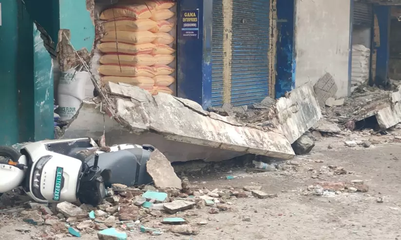 ഉള്ളിൽ കുടുങ്ങിയ നാലുപേരെ സമീപത്തുണ്ടായിരുന്ന തൊഴിലാളികളാണ് രക്ഷപ്പെടുത്തി ആശുപത്രിയിലേക്ക് മാറ്റിയത്. ഒരാളെ ഫയർഫോഴ്സ് എത്തി സ്ലാബ് മുറിച്ചുമാറ്റി പുറത്തെടുത്ത ശേഷമാണ് ആശുപത്രിയിലേക്ക് മാറ്റാനായത്. കോർപ്പറേഷന്റെ ഉടമസ്ഥതയിലുള്ള കെട്ടിടത്തിന്റെ സൺഷെയ്ഡാണ് തകർന്നുവീണത്. കെട്ടിടത്തിന് 60 വർഷത്തോളം പഴക്കമുണ്ട്. തൊഴിലാളികൾ വിശ്രമിക്കുന്ന സ്ഥലമായിരുന്നു ഇത്.